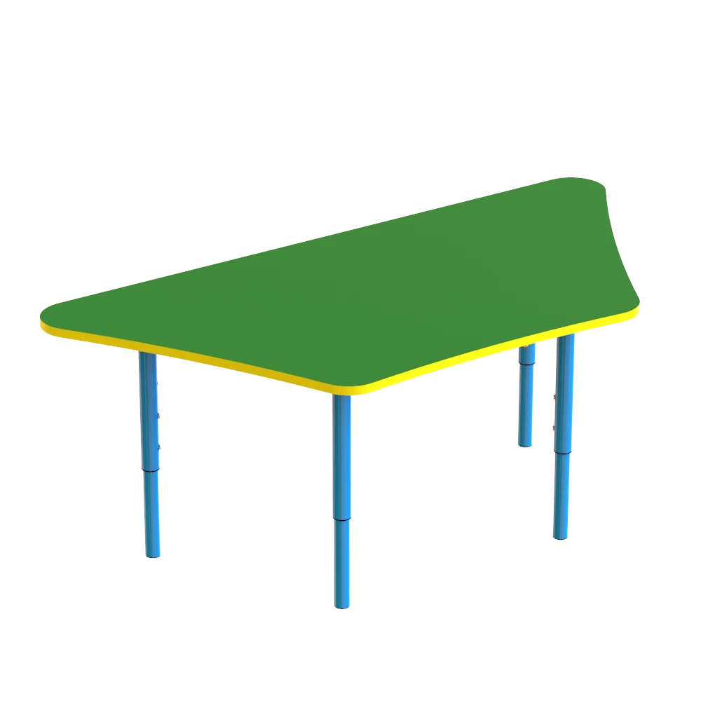Крепкий и удобный столик для детского сада «Трапеция», оборудован механизмом регулировки высоты для четырех ростовых групп детей — нулевой, первой, второй и третьей. Модель изготовлена из безопасных и гипоаллергенных материалов. Столешница, изготовленная в форме трапеции, что позволяет расположить столы в форме круга, для групповой работы. Конструкция абсолютно безопасна и имеет скругленные углы.