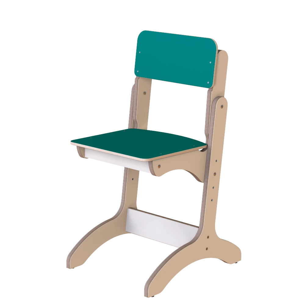 Зручний дитячий стілець із фанери з регулюванням висоти, підходить для використання в домашніх умовах та для комплектації дитячих дошкільних закладів. Усі матеріали є безпечними для дітей та мають усі необхідні підтвердження державних контролюючих органів. Виріб не має гострих кутів, знижуючи можливість травмуватися.